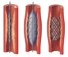 El stent se expande en el lugar donde está la obstrucción y queda fijado allí, permitiendo que la sangre fluya normalmente.